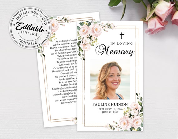 Editable Funeral Prayer Card Template Printable Memorial Etsy